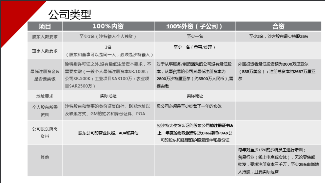 沙特阿拉伯公司类型: