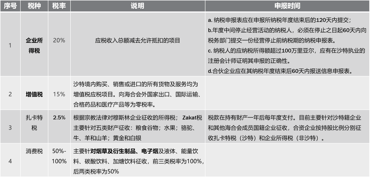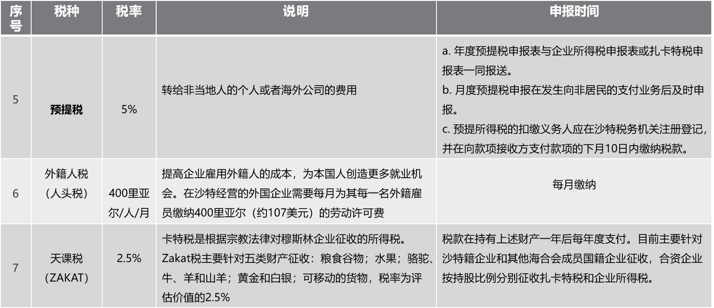 沙特阿拉伯税种税率:
