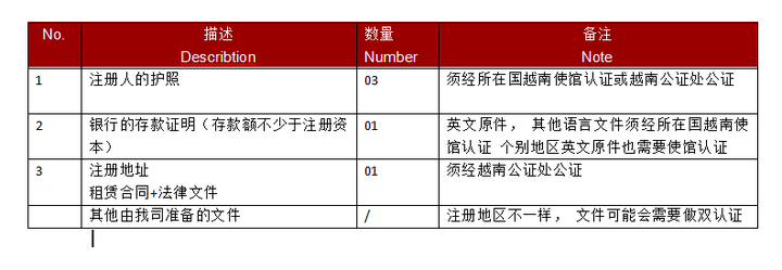 3、至少需要一个股东,一个法人代表。越南法人/股东,如果出现是中国人护照不可以是E开头; 旧版护照或其他国家护照可以使用,中国E开头护照,且在注册之前需要整本扫描护照,发给越南公证处,有时候可以接受小费处理,有时不接受,非WTO成员国籍,也支持小费处理,目前只支持海防和北宁。