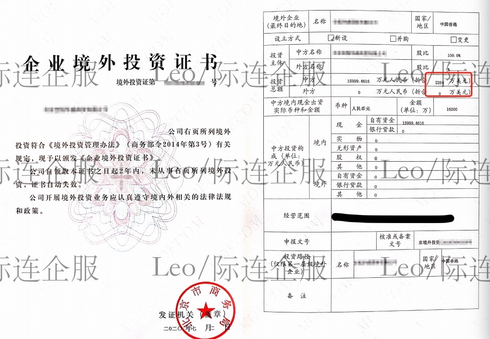 际连将全程代表客户完成发改委、商务部门及外管局等相关主管部门的审批,并在项目存续期内负责全生命周期的项目管理。欢迎咨询际连办理境外投资备案ODI审批的具体事宜。 |